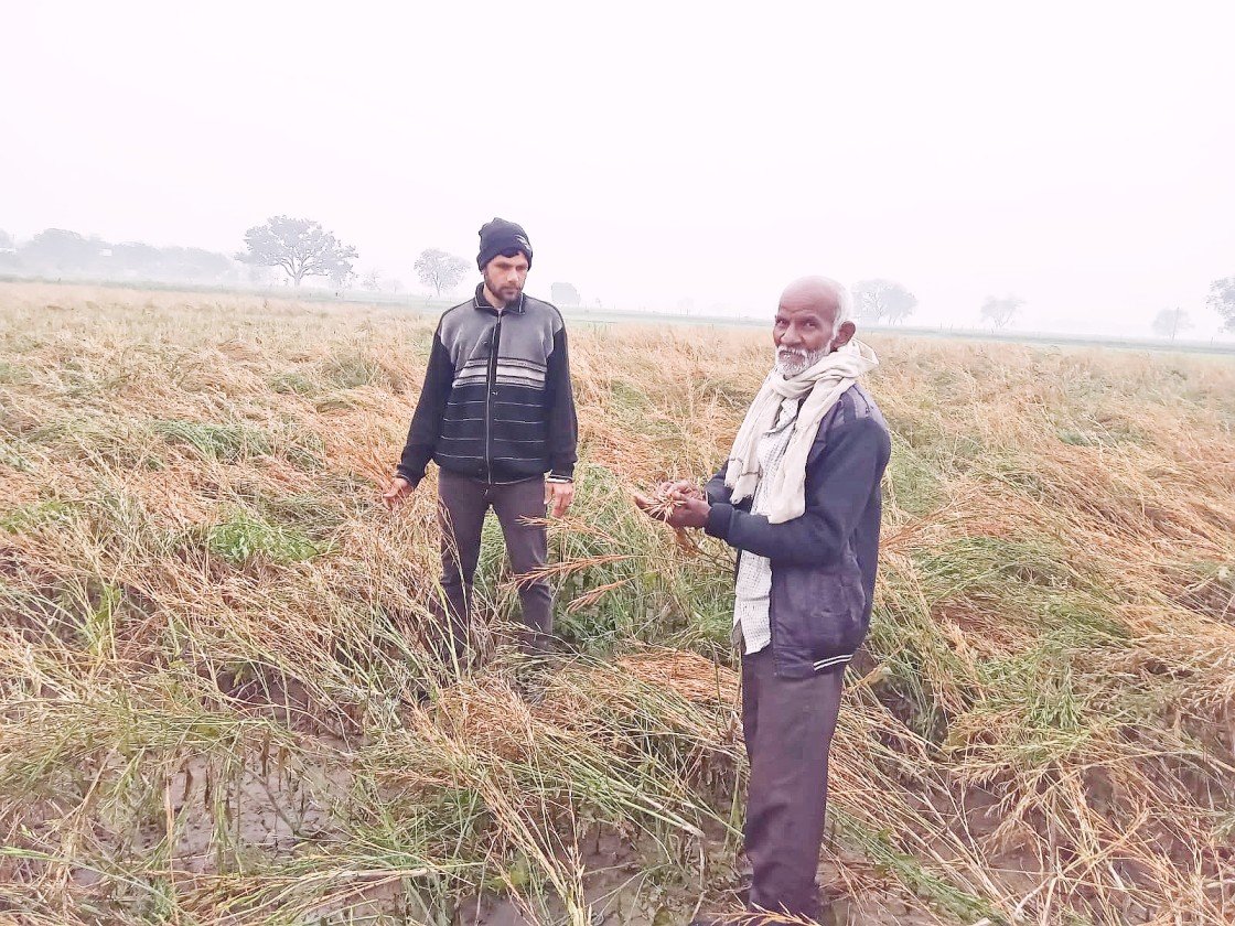 ओलावृष्टि से झड़ी सरसों की फसल, आलुओं में भरा पानी
