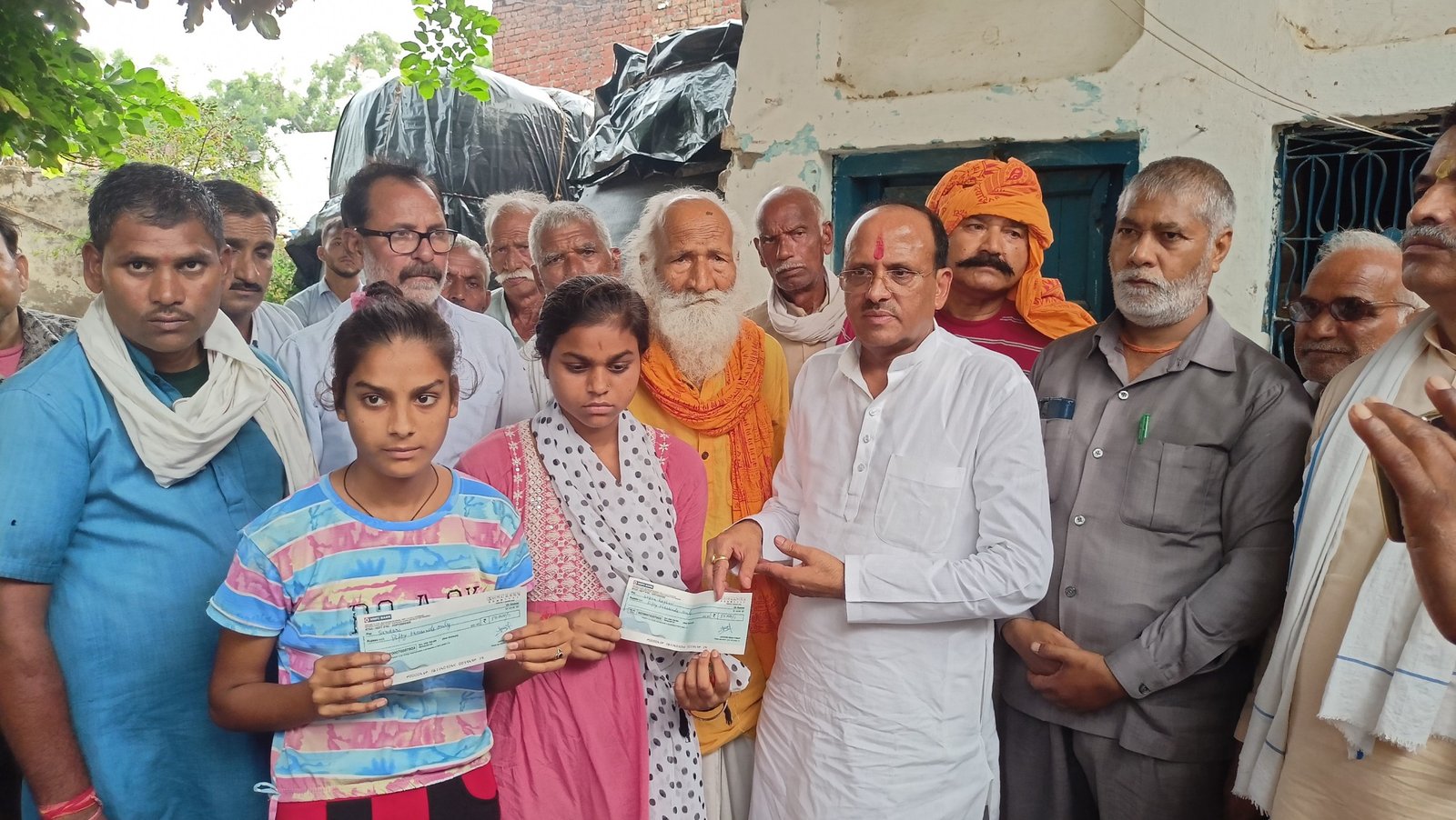 रविवार को भाजपा किसान मोर्चा ब्रजक्षेत्र महामंत्री व पूर्व ब्लाक प्रमुख जगबीर सिंह तोमर ने पहुंचकर पीड़ित परिवार को सांत्वना दी, इसके साथ आर्थिक तंगी से जूझ रहे परिवार के होमगार्ड स्व प्रमोद कुमार की बेटी सुंदरी और स्व संजय कुमार की बेटी सपना राघव को 50-50 हजार रुपए की चेक के माध्यम से धनराशि प्रदान की है।