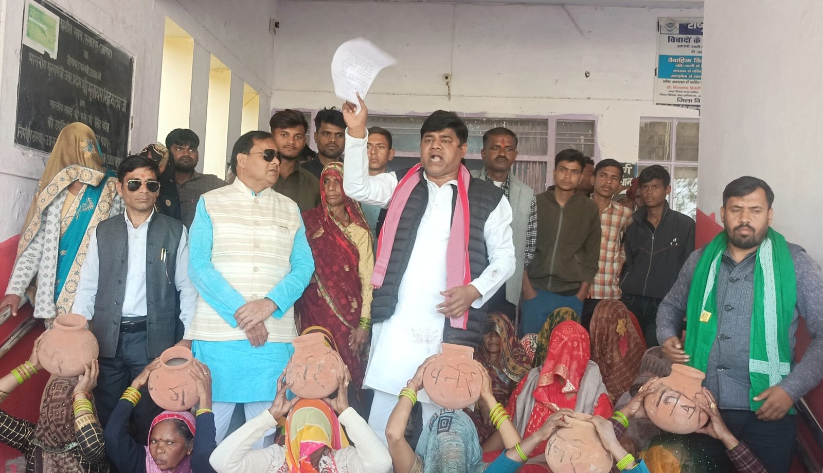 - सिर पर ‘गवर्नर’ लिखे मटके लेकर तहसील पहुंची महिलाएं